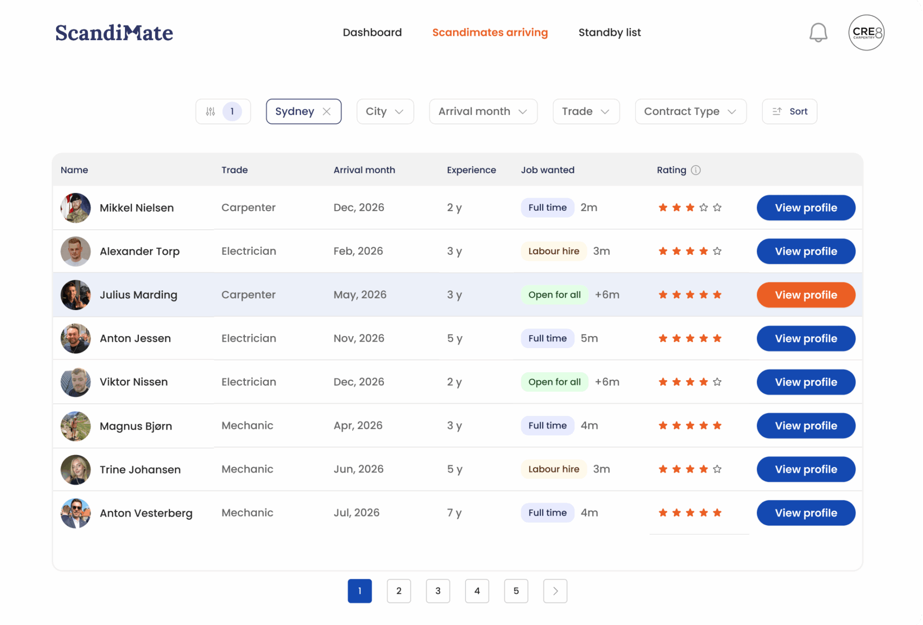 - Filter by trade, experience, location and availability